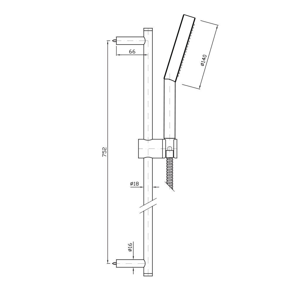 Zucchetti Handshower and Sliderail Set complete slide rail length 800mm, adjustable bracket with handshower with silicon rubber nozzles for easy cleaning and generous luxurious spray, 1500mm metallic flexible hose and wall union.