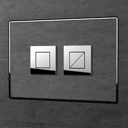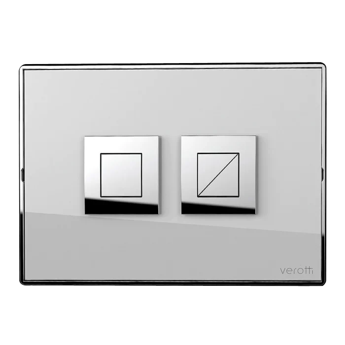 Verotti Custom Insert Flush Plate is a new version which allows you to insert a tile, piece of marble or other material behind the buttons so that you only see the small chrome trim and the actual buttons. This means it creates a more seamless look on the wall to match your existing wall material.