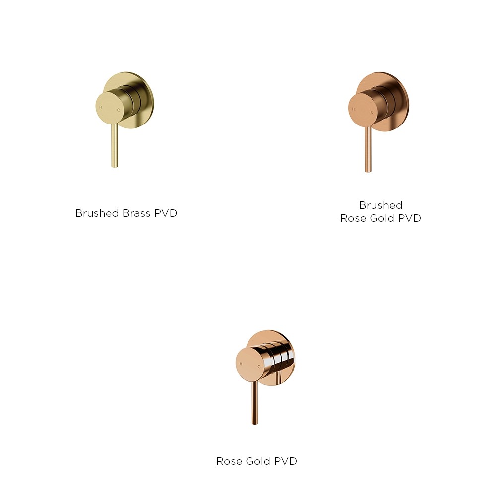 Axus Pin shower or bath mixer (pin down) is used to operate a shower head or bath spout. This particular series of mixer has some finishes in a PVD coating. PVD (short for Physical Vapor Deposition) is a way of coating products so that the finish has superior wear and corrosion resistance with a higher hardness than electroplating.