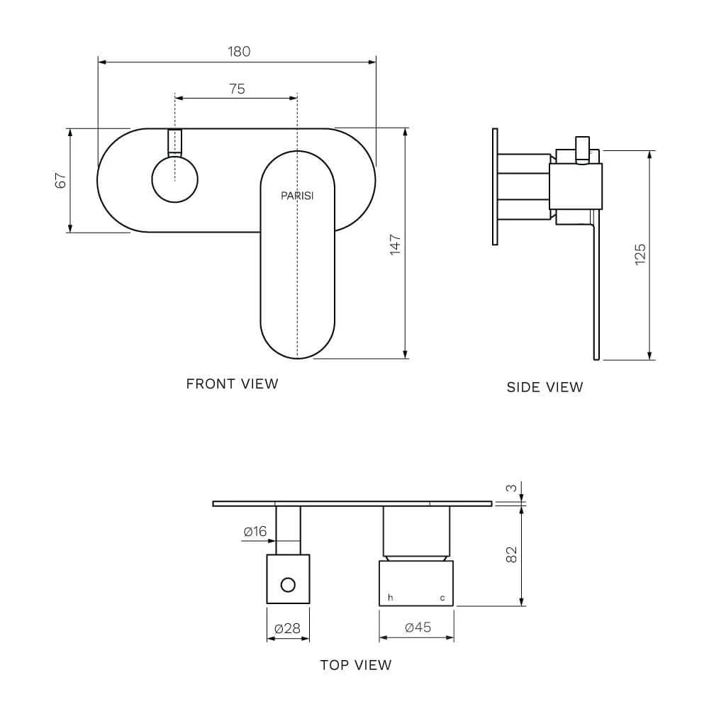 Parisi Ellisse II Wall Mixer with 2-Way Diverter will control 2 outlets which could be 2 showers or a shower and a bath spout.