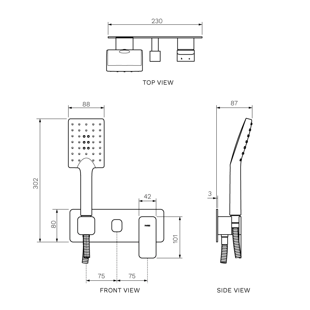 Parisi Quasar II Wall Mixer with Diverter and ABS Hand Shower allows you to control the handshower on this plate plus a shower from the ceiling or wall.