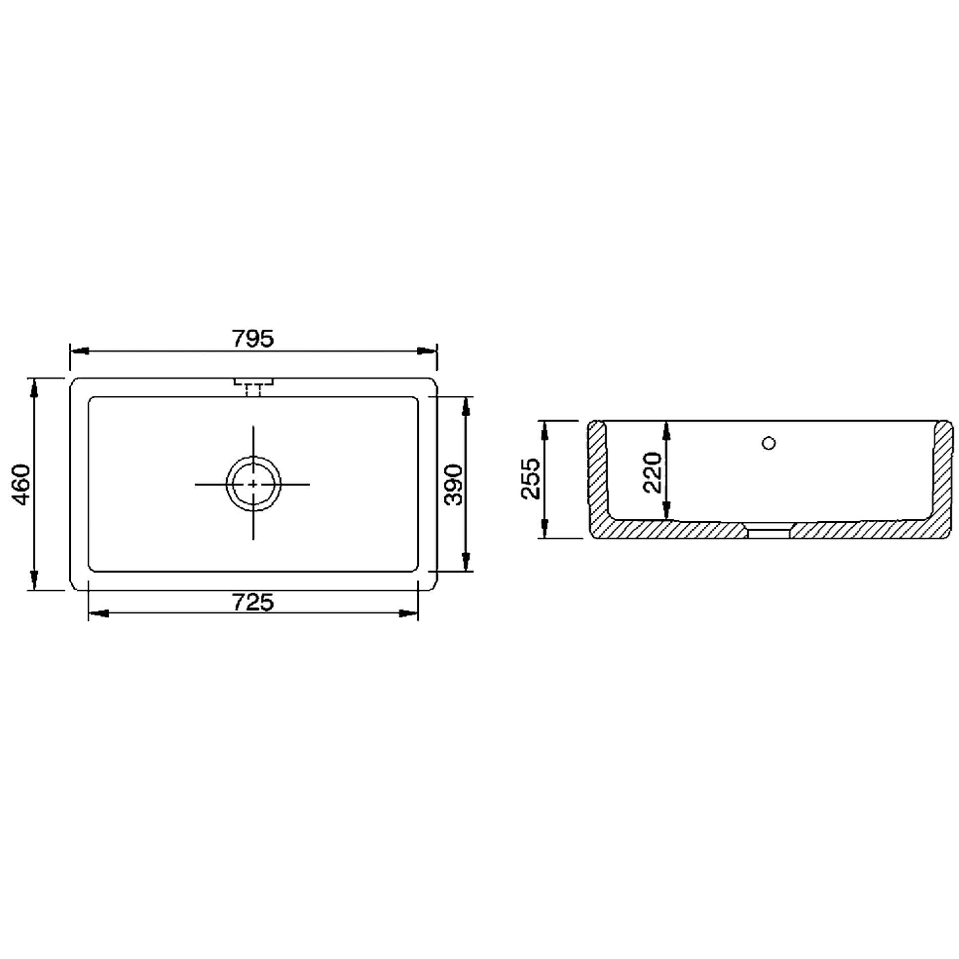 Dimensions L 795 mm × W 460 mm × H 255 mm × D 220 mm