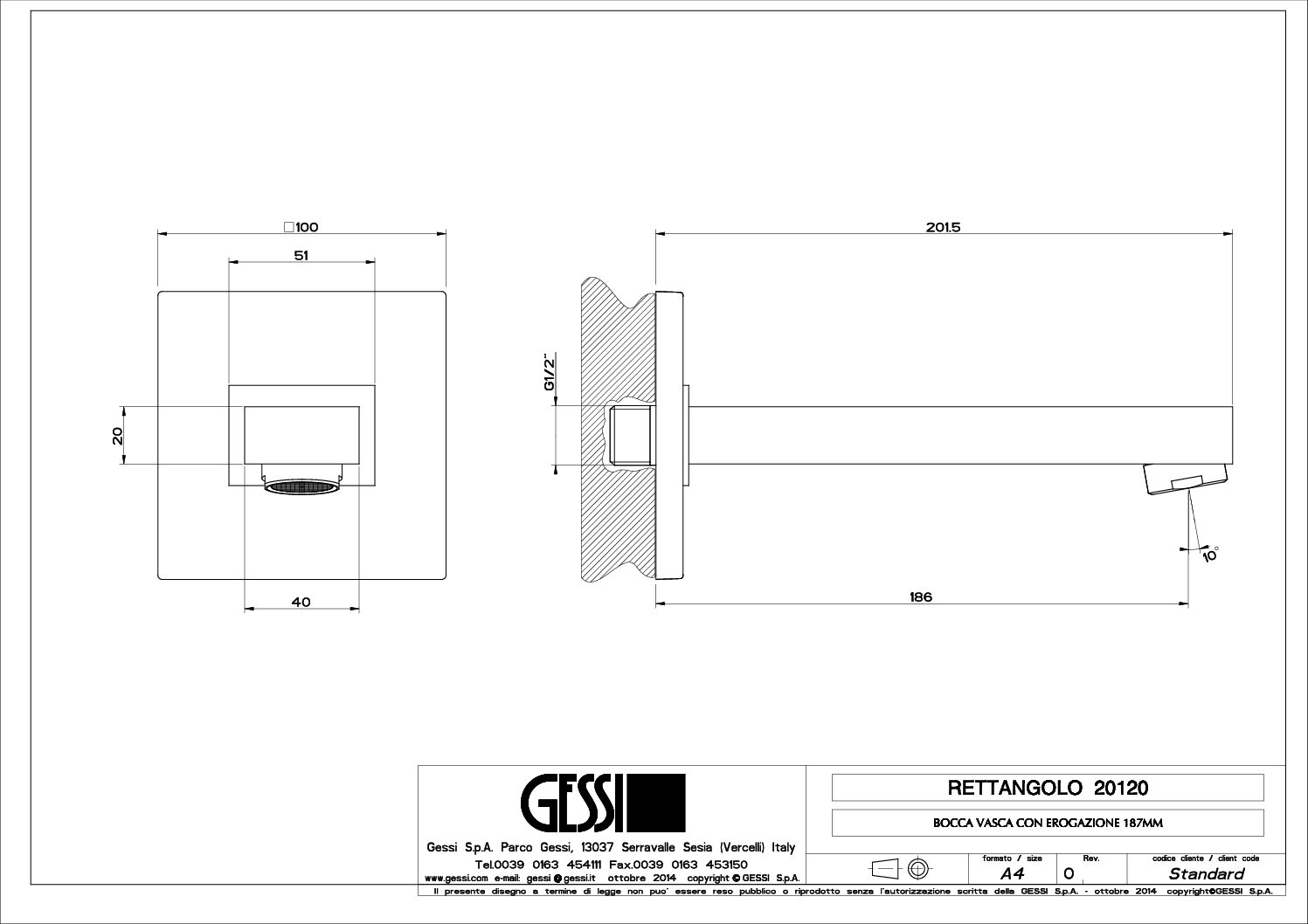 Gessi Rettangolo K Bath Spout is Manufactured in Italy and designed by the Gessi team to complement the new Rettangolo K range.