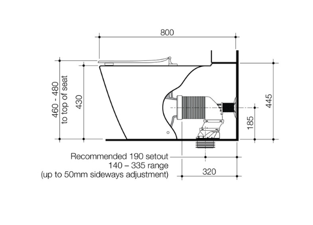 Seat not included, Pedigree II Care, Caravelle Care or Colani seat options recommended (Single flap seat is required for AS1428.1 compliance)