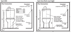 Caroma Opal Cleanflush Easy Height Wall Faced Close Coupled Suite with Double Flap Sea is the closest retro fit replacement for the old Caroma Opal 2000 toilet suite. The Opal 2000 suite with the centre of back inlet connection to floor is apprx 775~780mm where the Opal clean flush easy height is apprx 785mm. The existing Opal 2000 pan height is approximately 395mm where the Opal clean flush easy height pan height is approximately 435mm.