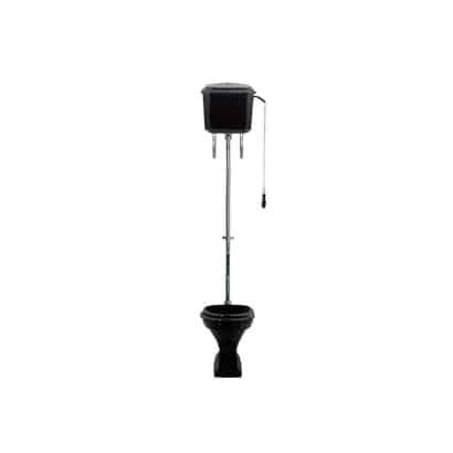 Imperial Astoria High Level Cistern and Toilet Suite Gloss Black is a very luxurious and traditional way of setting up the toilet. The lever pull is very detailed porcelain and has the word ‘pull’ in white writing. The brackets which hold the cistern up can be in white or chrome and the seat can be in a variety of colours although we suggest black.