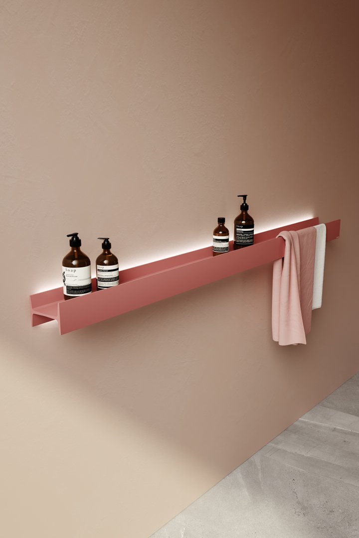 Antonio Lupi LETTERAMUTA Wall Shelf with LED Lighting can be made to any length and lacquered in any finish. Available without led light, with led lighting on the bottom, with top and bottom led lighting. Complete with transformer.