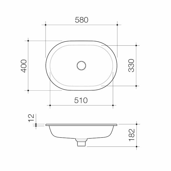 Caroma Liano II 580mm Pill Under/Over Counter Basin – White is supplied with ceramic pop–up waste plugs in matching colours, also compatible with Urbane II metallic basin pop–up plugs and wastes (codes 687330–)