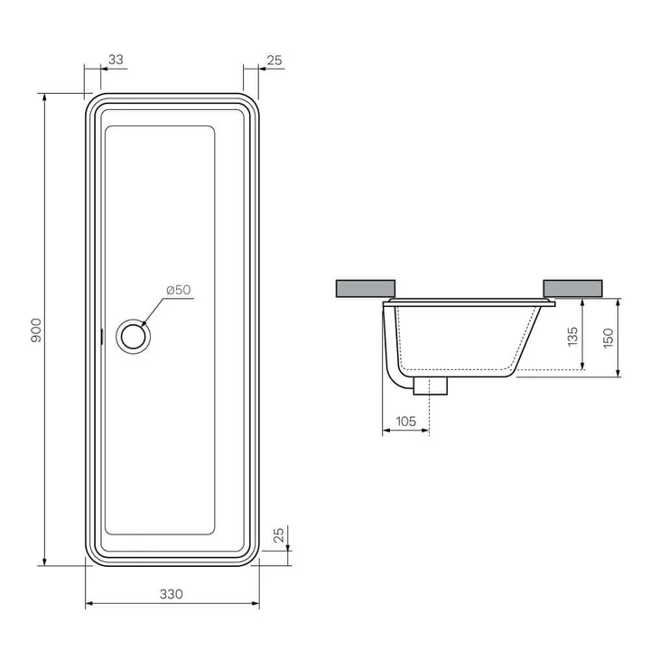 Dimensions W 900 mm × H 150 mm × D 330 mm