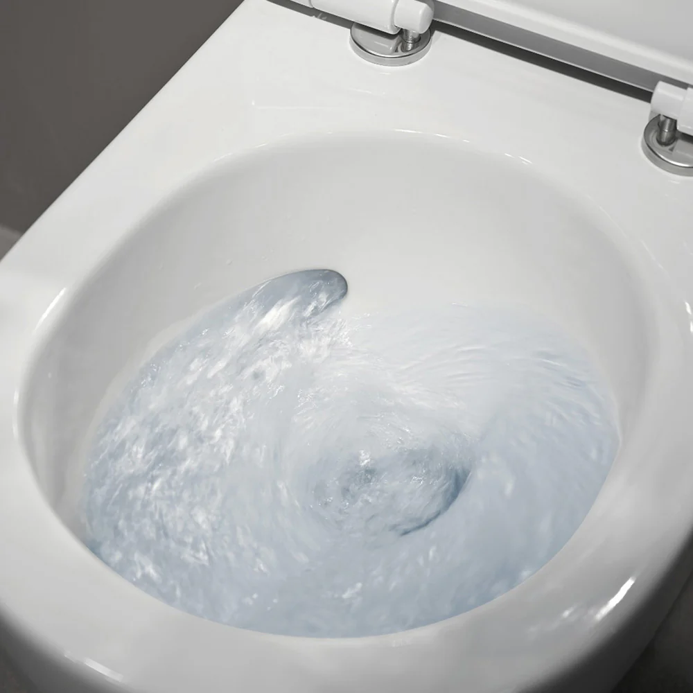 Go Silent Technology: A vortex-style flush that manages water velocity to eliminate noise and splashing.