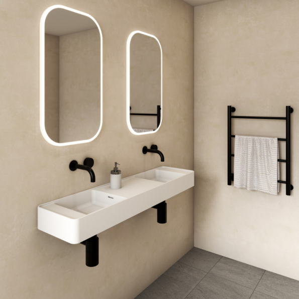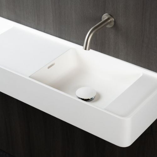 Omvivo MOD 1200 Wall Basin is the practical and versatile basins feature soft curves, integrated bowls with overflows, generous bench space and subtle lip detailing. Available in four sizes with the maximum width front-to-back being 300 mm, Mod is ideal for narrow bathrooms in both residential and commercial spaces.