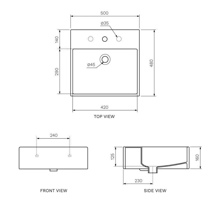 The Quadro 50 Wall Basin has a slimline rim with a sturdy tap landing making this basin both functional and stylish. Note Basin is not glazed at rear.