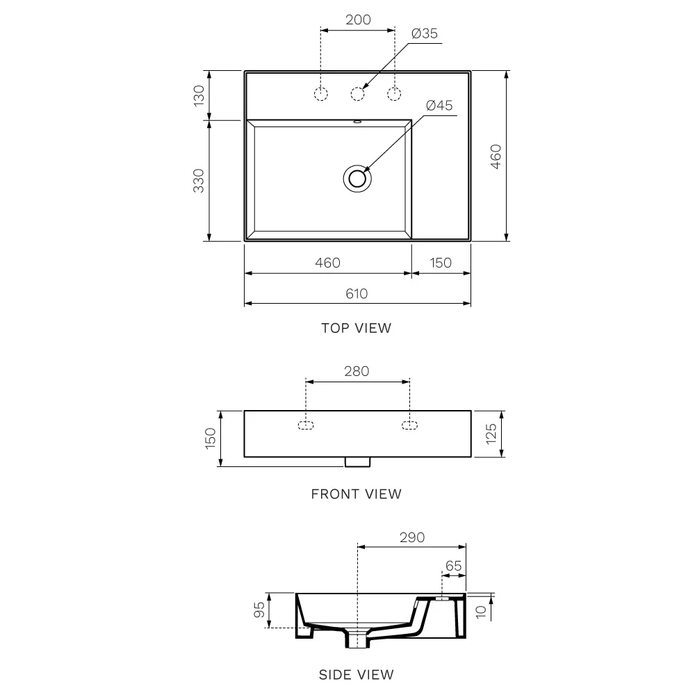 Dimensions W 610 mm × H 125 mm × D 460 mm