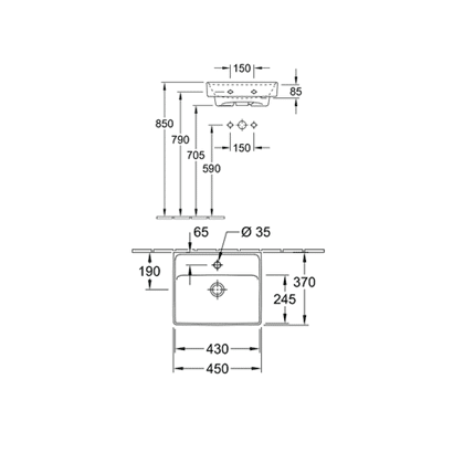 Villeroy & Boch Collaro 450 Wall Basin 1 Tap Hole is a thin rimmed small basin that fits perfectly in small bathrooms and powder rooms.