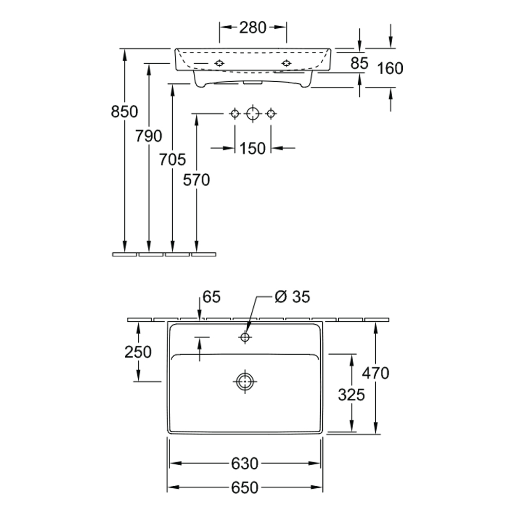 Villeroy & Boch Collaro 650 Wall Basin is the newest model from the luxurious German brand Villeroy & Boch. The Memento is made from TitanCeram which increase the strength of the ceramic and has a beautiful shadow line design which is definitely on trend. It can come as a 1 tap hole or 0 tap hole option and requires the purchase of a basin waste
