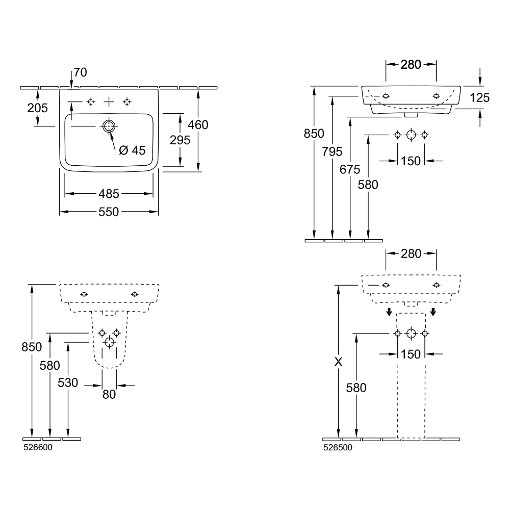 Villeroy & Boch O.Novo 2.0 550 Wall Basin