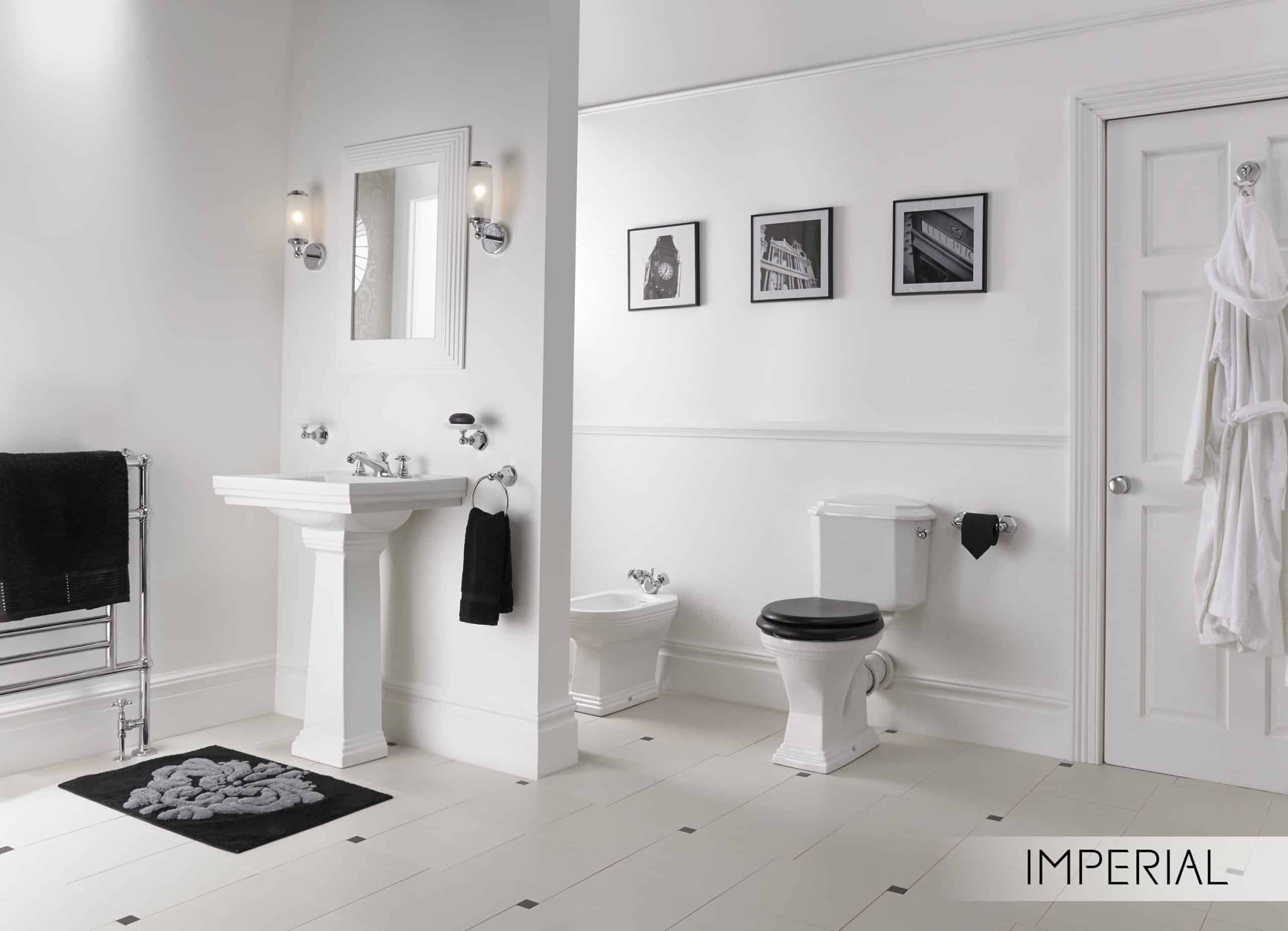 The square forms and assertive geometric styling from the Astoria Deco collection by Imperial offer a 1920’s bathroom experience. It comes as a complete range of basins, bidets, toilets, mirrors and consoles all handmade in Britain. The range offers hand crafted brass basin stands that exude the opulence of an art deco inspired bathroom. Each toilet can come with 4 different coloured toilet seats and the cistern can be set at the 3 different heights with the classic pull chain lever.