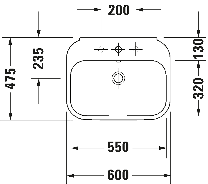 Duravit Happy D.2 Wall Basin 600mm with overflow 1 Tap Hole