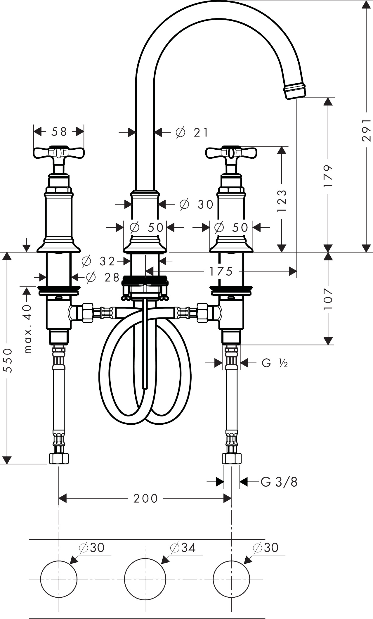 consists of: 3-hole basin mixer, waste set