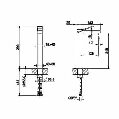Gessi Rettangolo K High Basin Mixer is Manufactured in Italy and is suitable for those installing basin mixers behind high raised ceramic basins. The lever being on the top makes it very practical to use and the beautiful upgraded design of the new Rettangolo K offers squared shapes with crisp lines.
