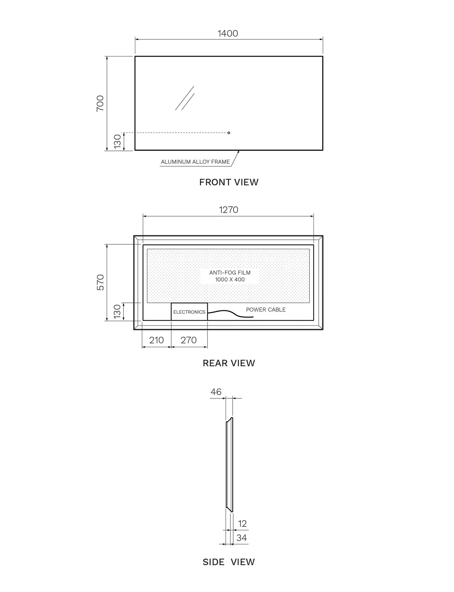 Dimensions: 1400 x 46 x 700mm