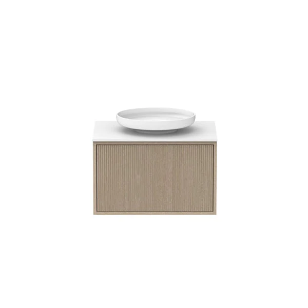 ADP Clifton 600 Wall Hung Vanity is a spectacular new vanity that has the V-groove finish. The top finish is 12mm benchtop in Bright White Cherry Pie Premium Solid Surface. The doors are push-to-open and and it is Hettich AvanTech YOU push-to-open drawer(s) in anthracite with internal storage shelf (removable). There is also chrome pop up wastes supplied and a Space Saver Plumbing Kit included to conceal plumbing behind drawers. There is a number of basins this can be purchased with including the ones pictured. These vanities can’t be made in custom sizes and take 14 days to make.