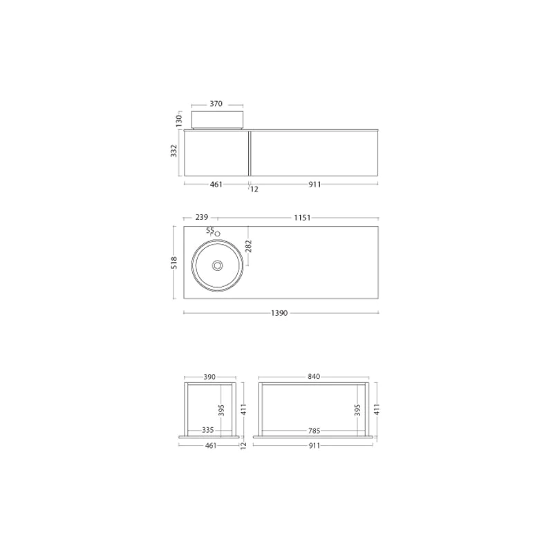 The Parisi Tao 1350 Wall Mounted Bathroom Vanity Cabinet comes in 4 different colour variations including Polaris (white), Noir, Gris Moyen and Betulla. The original T Piece design with timber outlays gives this piece a multi-layer bathroom style feel. This is on display with the basin in the white Polaris finish and the basin is an added extra