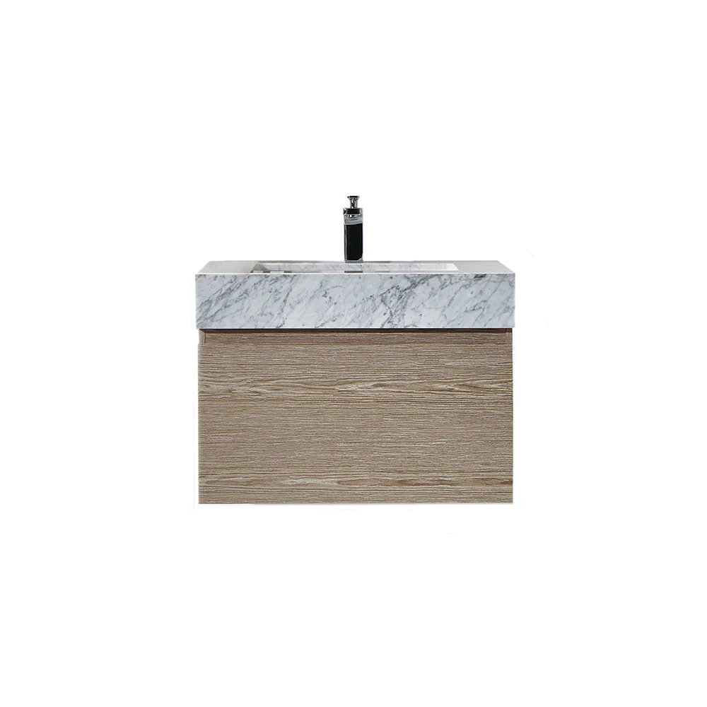 Parisi Veneto 700 Wall Mounted Vanity Basin Top | Sydney is a natural marble stone basin top with an under counter ceramic basin that has 1 tap hole for a vanity mixer tap. The wood is moisture-resistant veneer and can also come in a gloss white vanity surround. The soft-function drawer mechanisms and cosmetic dividers in drawer.