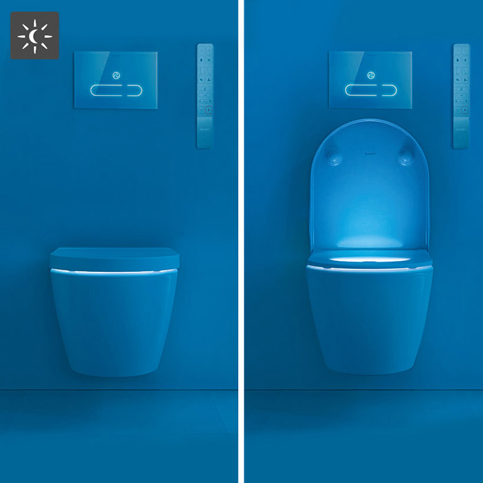 Duravit SensoWash® Starck f Plus Wall Hung Toilet is the newest version of the Sensowash toilets for the Australian market. The most pleasing feature of the Sensowash Starck f Plus is the aesthetic nature of the toilet design. There is 2 versions of the new Sensowash Starck f and the plus is the most sophisticated version of the two. The main differences that set the Plus apart from from the Lite version is that it has Odour extraction technology (can only use 1 type of cistern), automatic lid opening and closing and the seat material is made from Urea not PP which is a lighter more cost effective material. The SensoWash® Starck f can also be individually configured and controlled using the SensoWash® app which is a special feature of this smart toilet from Duravit