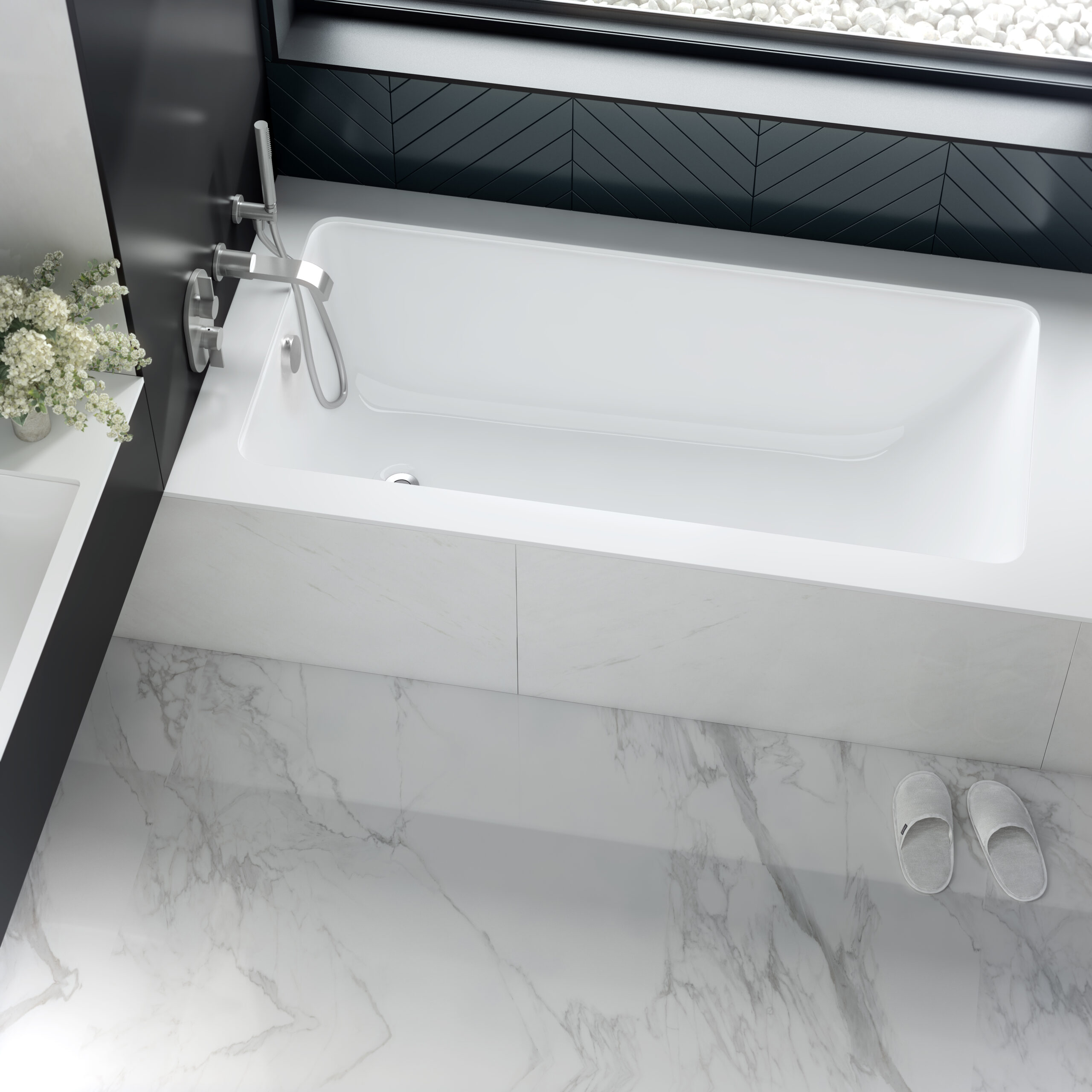 Victoria + Albert Kaldera 4 Drop in Stone Bath made from Quarrycast Volcanic Limestone which retains heat well, scratch resistant and warm to the touch quickly. Offers a matching material if you go with a Victoria + Albert basin and is very compact at 1500mm long