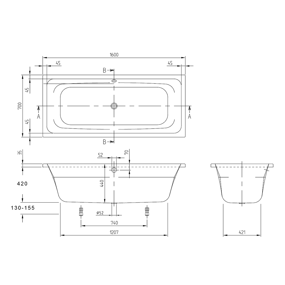 Villeroy and Boch 1600mm Targa Built In Acrylic Bath