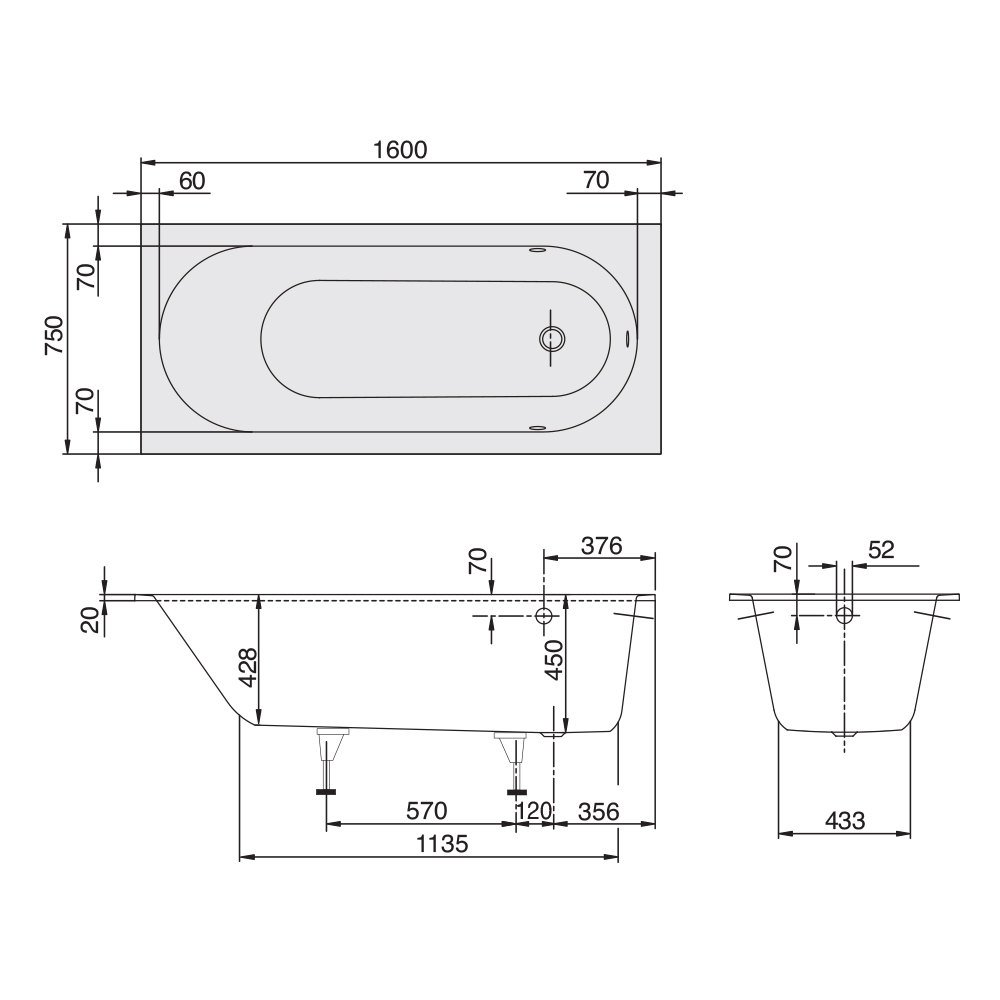 Includes adjustable bath feet