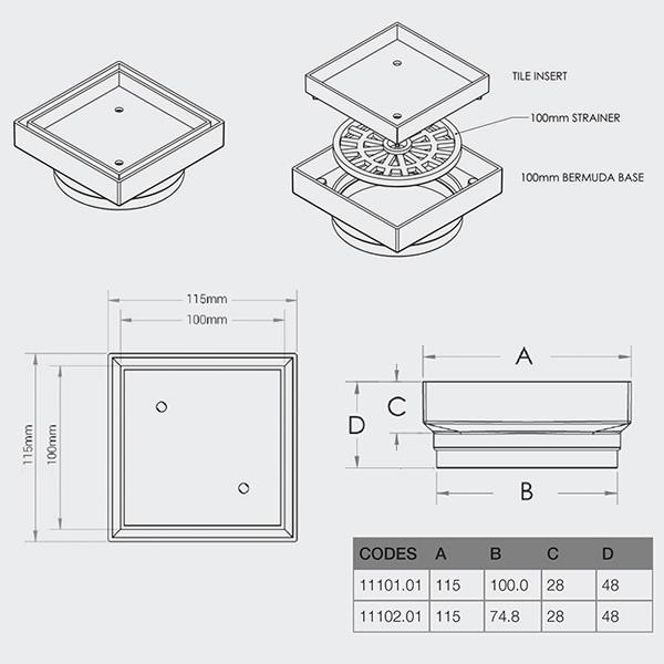 Bermuda Tile Insert Square Floorwaste is a common low cost option that suits the majority of bathroom renovations. The product comes standard with a strainer and we have stock available