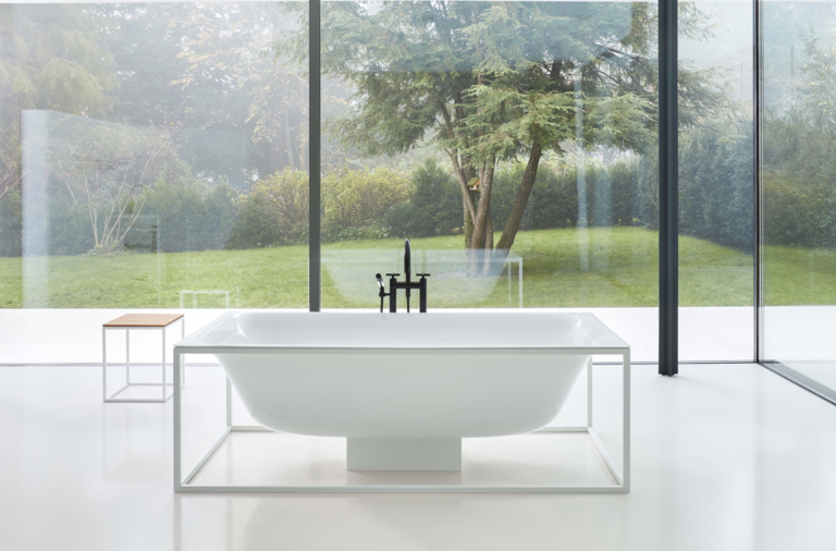 The Bette Lux Shape Freestanding Bath with frame is a modern design made for the contemporary bathroom. Made in Germany from hand, this is a luxurious bath which sits at the top of the bathroom range.