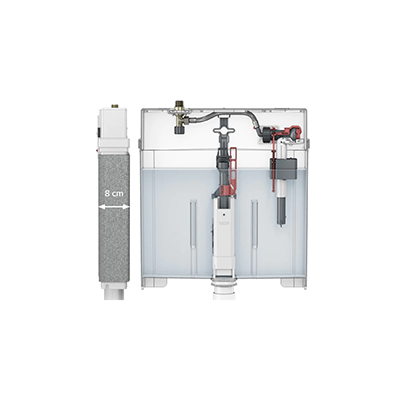 There is two mechanical cisterns and one newer electronic cistern. The majority of people will have a mechanical cistern and there is an 8cm cistern and an undercounter cistern. The main difference between these two cisterns is their height. An 8cm cistern is taller, the plate will sit on the wall and when the toilet seat is lifted, it shouldn’t cover the toilet push plate. An undercounter cistern will sit below a bench, or shelf and when you lift the toilet seat, it should cover some of the push plate.