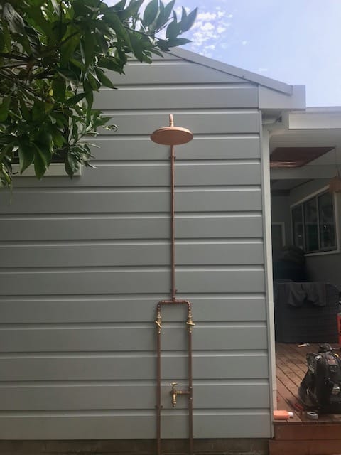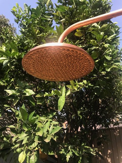 The Natura Copper 200mm Outdoor Overhead Shower is for any outdoor usage and is 100% spun metal copper. It can be in the backyard, around the pool or even in the bathroom and has a lifetime warranty as this is copper metal and not plated brass like some of the cheaper models. This outdoor shower is fantastic to shower under and can be made into all sorts of different pool and house applications. it uses a standard 1/2 inch female connection and is made in Australia. There is also a 250mm size available and these are on sale now. Please note, these will change colour and darken over time as these are living copper metal.