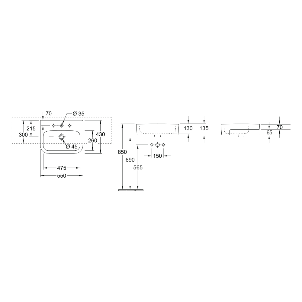Villeroy and Boch Architectura 550 Semi-Recessed Basin
