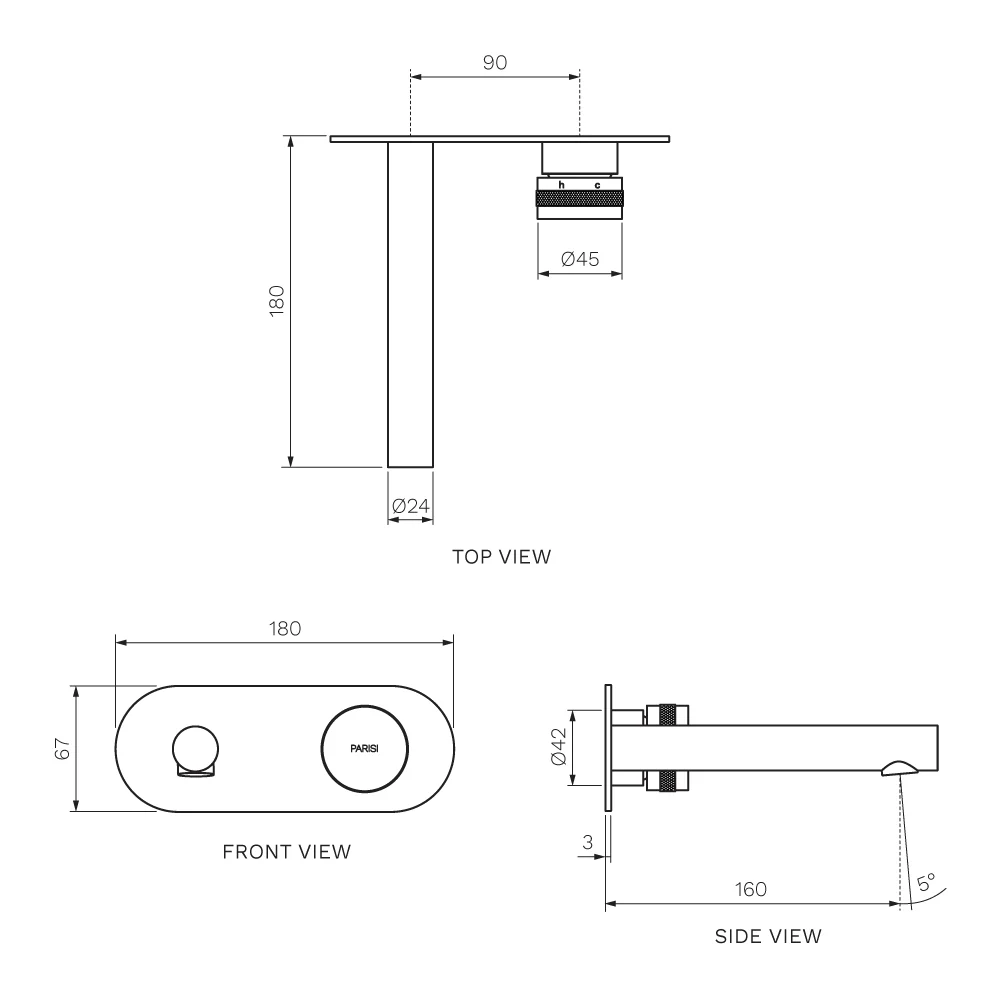 Parisi Todo II Wall Mixer with 3-Way Diverter and Handshower