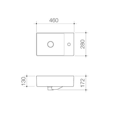 Caroma Urbane II Hand Wall Basin (1 Tap Hole) is thin-rim design to make a fashionable statement in any modern bathroom. Basins include an integrated ceramic pop-up plug and waste which sits flush with basin when open. The basin tap hole is on the right.