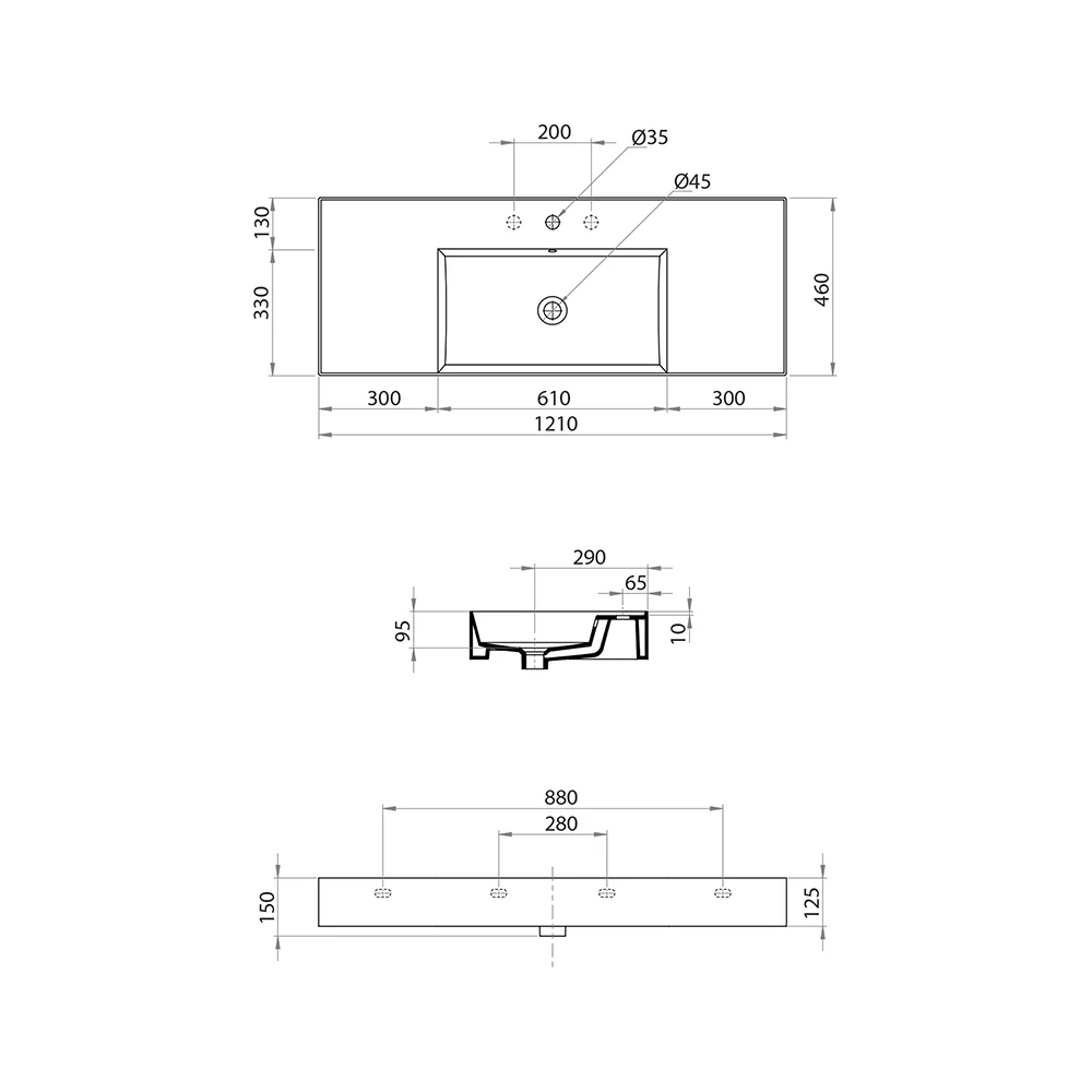 Dimensions W 1210 mm × H 125 mm × D 460 mm